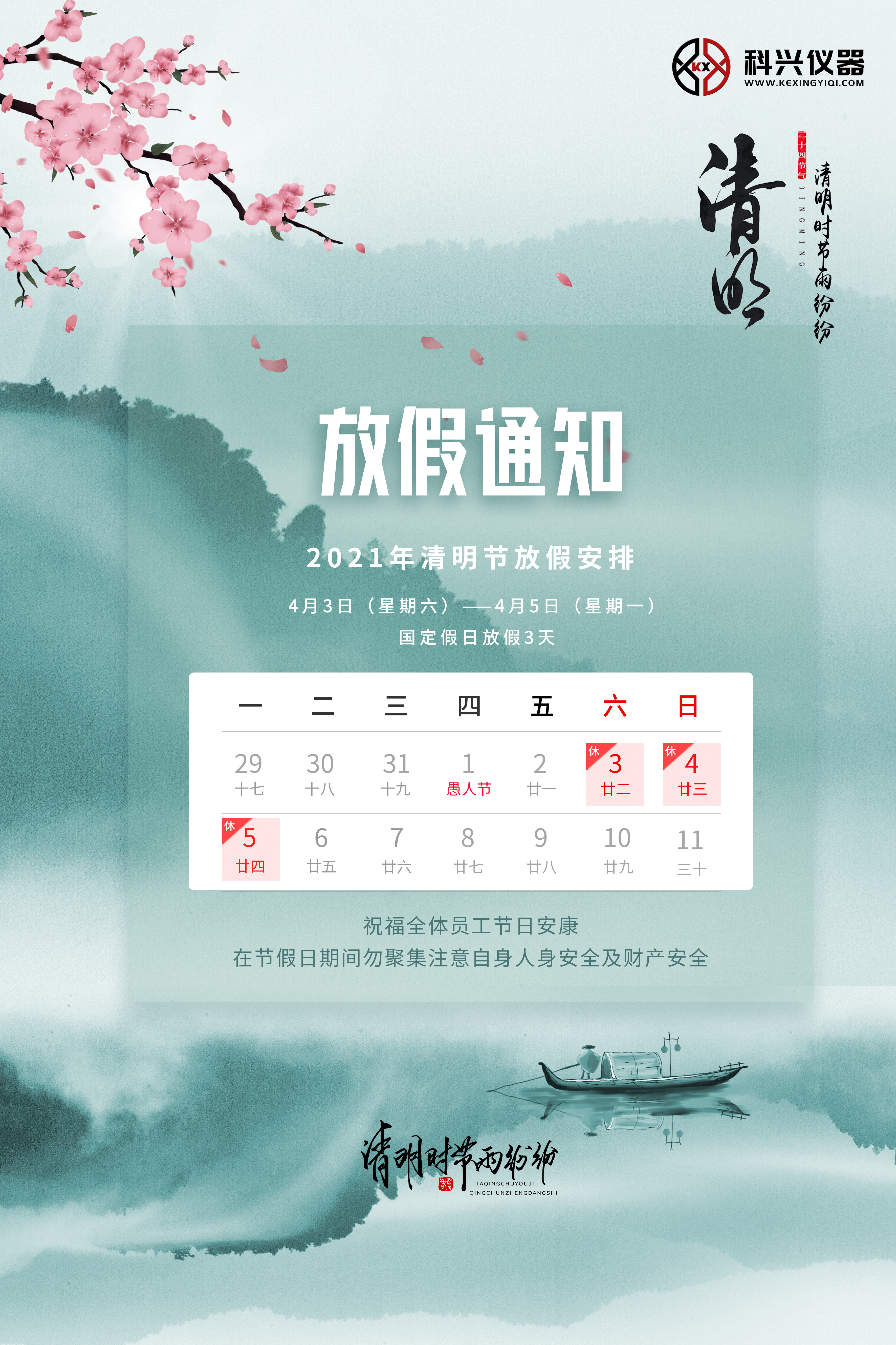 當(dāng)前位置您當(dāng)前的位置: 首頁(yè)>新聞中心>公司動(dòng)態(tài)>科興儀器2021年清明節(jié)放假通知